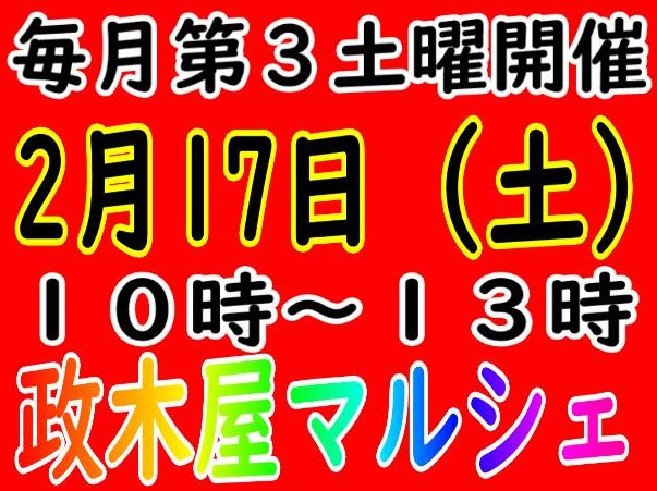 タイトル通り2月17日(土)は麵の工場直売会!「政木屋マルシェ」開催日です。