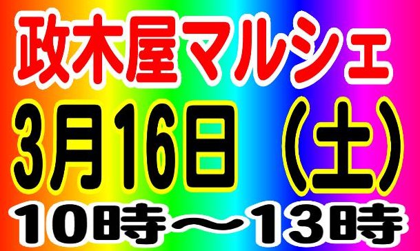 毎月第3土曜日=3/16(土)は 政木屋マルシェ開催日!