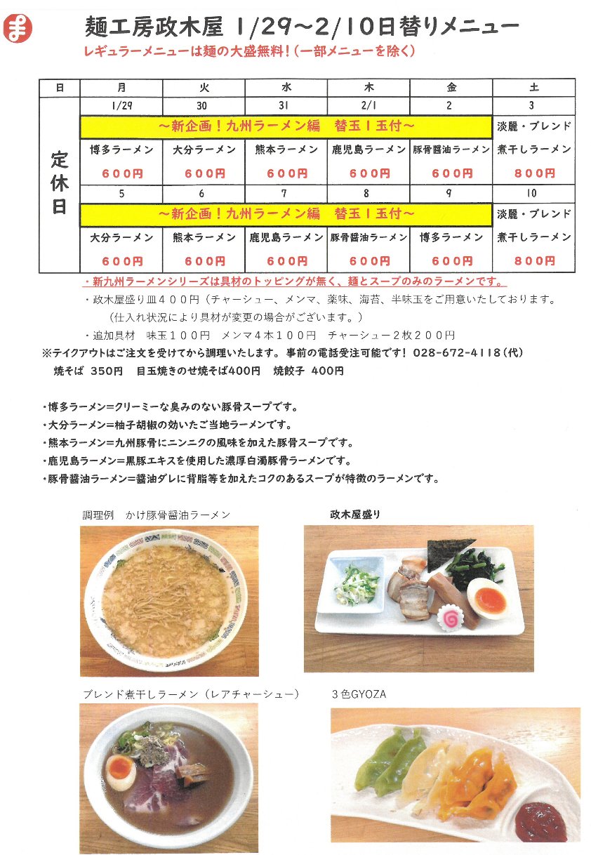 麺工房政木屋の日替り新メニュー登場!