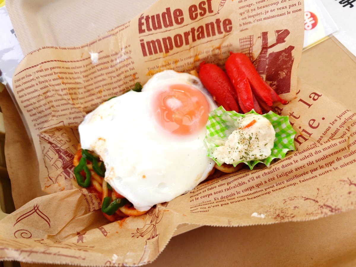 生パスタを使った優しい味のナポリタンに目玉焼きやその他のトッピングが乗ってお値打ち価格での販売です。