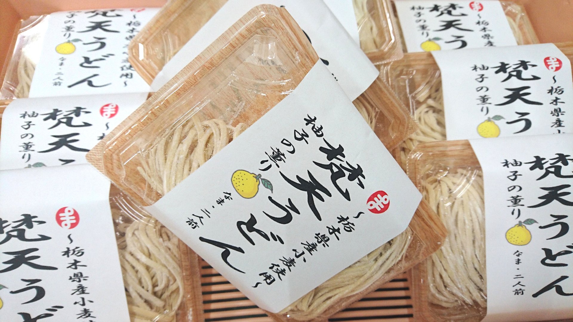 今回は毎年11月の梵天祭り(今年も中止が決定済み)にちなんだ「梵天うどん」(宇都宮産の柚子をたっぷり練りこみました)を販売いたします。