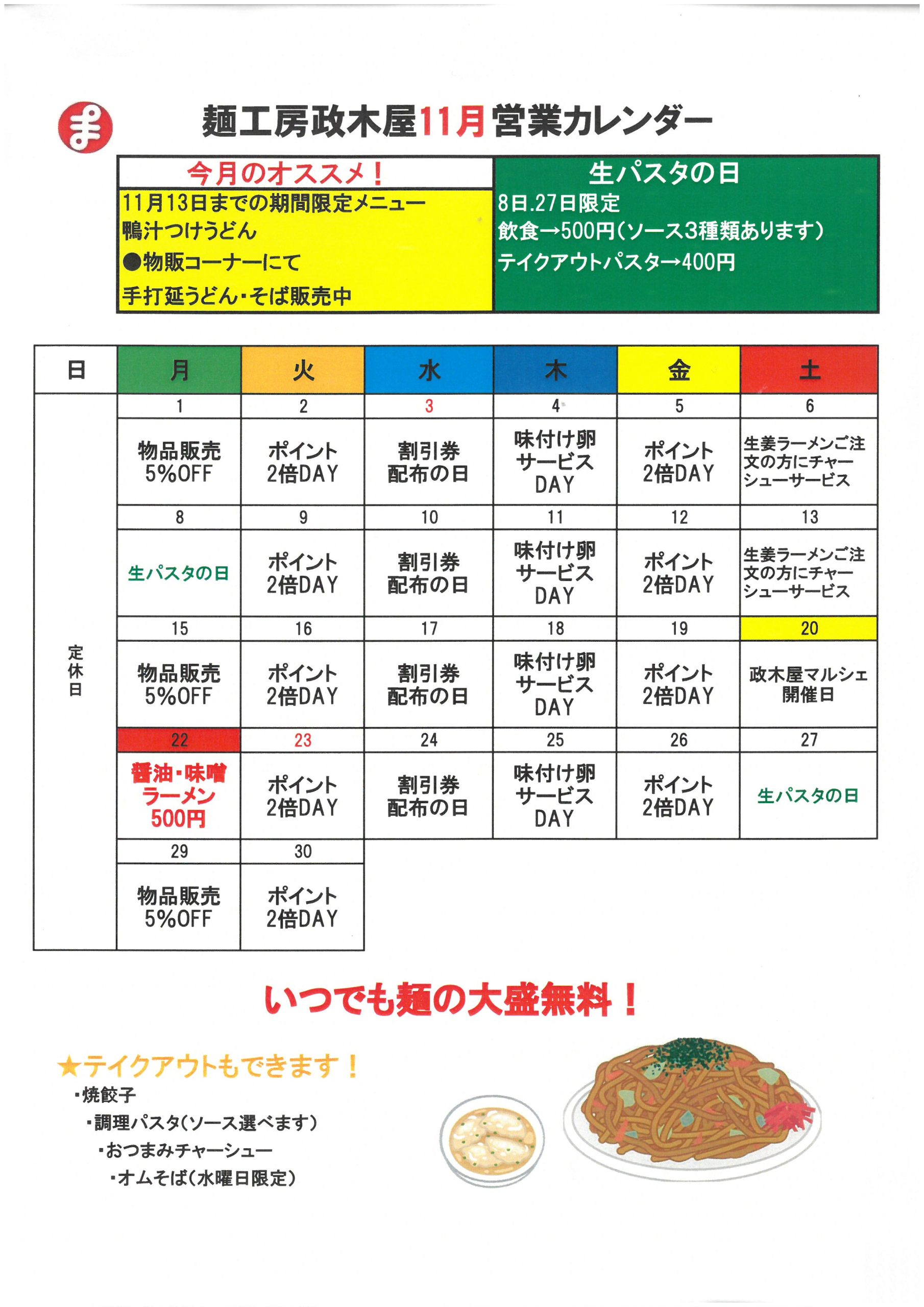 他にもイベント盛りだくさんの麺工房政木屋を是非ご利用ください。